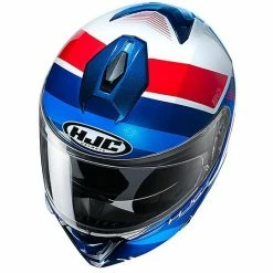 Doppelter Modularer Homologationshelm P / J Moto HJC I90 HOLLEN MC21 Weiß Blau Rot