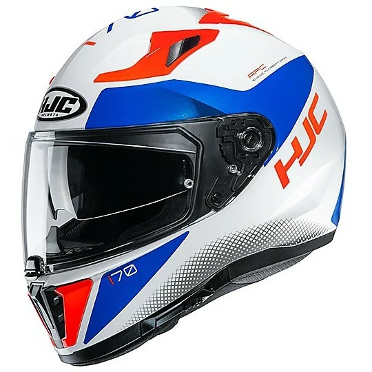 Der HJC i 70 ist ein Integral-Sporthelm mit einer internen 3-Positionen-Sonnenblende. Das Visier HJ-31 lässt sich leicht in der Mitte arretieren und kann dank des RapidFire II-Systems schnell ausgetauscht werden. Mit dem HJC 70-Helm bleiben Sie mit 7 Lufteinlässen und 2 Lüftungsschlitzen am Spoiler kühl und trocken. Das kompakte und leichte i70 bietet eine hervorragende Passform.
