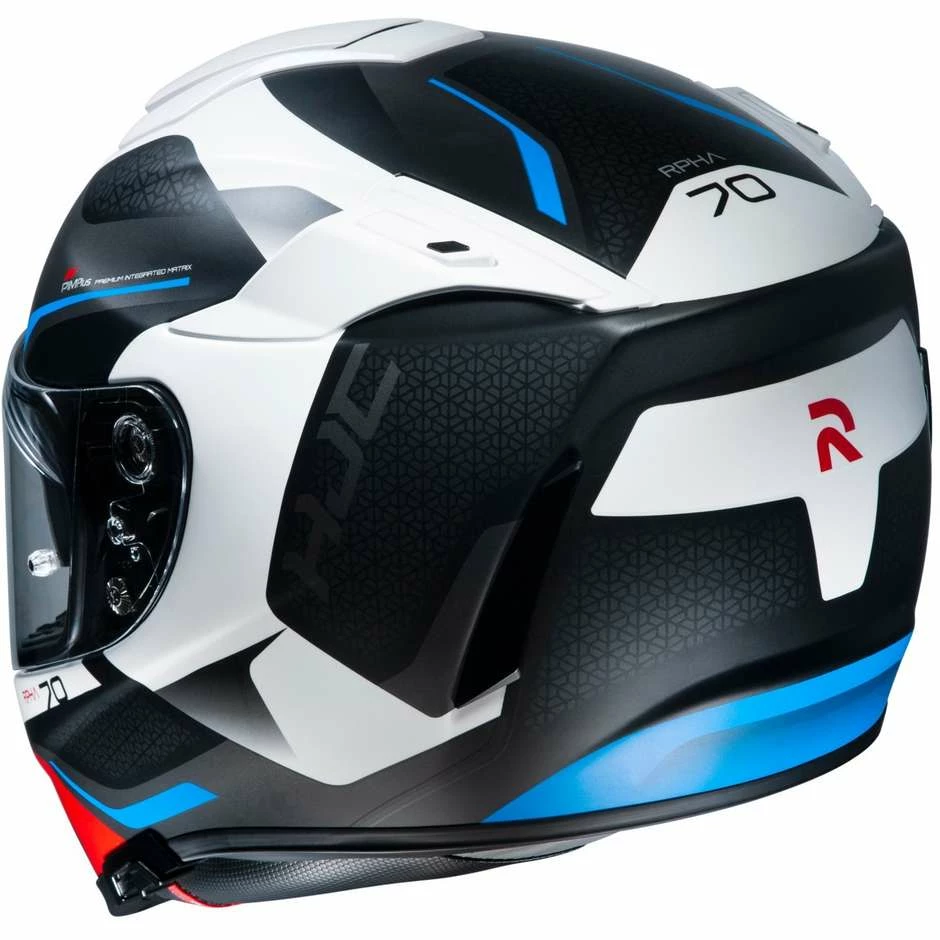 Der RPHA 70 von HJC ist ein extrem leichter und komfortabler Tri-Composite-Faserhelm. Technische Referenzdetails für einen hochwertigen Helm, ideal sowohl auf der Strecke als auch auf der Straße. Es verfügt über ein klares Visier mit großem Sichtfeld und eine einziehbare Sonnenblende für eine komfortable und sichere Fahrt auch an besonders sonnigen Tagen. Aerodynamisches Design mit Heckspoiler zur Erhöhung des Luftaustrittsstroms, interne Belüftung des Helms optimiert durch das Vorhandensein von oberen Lufteinlässen, die gleichzeitig die Luft ansaugen und ablassen, um maximale interne Belüftung und damit unvergleichlichen Komfort zu gewährleisten .Die technischen Merkmale des Helms werden durch das Verriegelungssystem mit doppelter D-Schnalle, die abnehmbare Innenpolsterung aus innovativem antibakteriellem Gewebe, das eine perfekte Feuchtigkeitsaufnahme garantiert, und das im Lieferumfang enthaltene Pinlock-fähige Visier mit Pinlock-Linse vervollständigt. Modernes und faszinierendes Design und Grafik, die den Geschmack der skurrilsten Motorradfahrer erfüllen können.